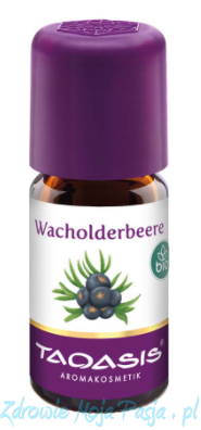 Olejek jałowcowy - zapach korzenny, stymulujący, ocieplający. Olejek przeciwbakteryjny i przeciwgrzybiczy stosowany przy terapii trądziku, łojotoku i łupieżu. Reguluje gospodarkę płynami w organizmie stąd stosowany przy cellulite, żylakach, otyłości. Zmniejsza rozstępy skóry. Olejek jałowcowy zalecany przy bólach menstruacyjnych, reumatyzmie i artretyzmie. Działa przeciwbólowo przy kolkach spowodowanych niestrawnością i wzdęciami. Obniża ciśnienie krwi, działa łagodnie uspokajająco, zmniejsza zmęczenie umysłowe, stany lękowe i ułatwia zasypianie.
