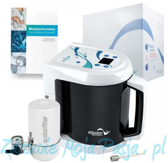 Urządzenie domowe w którym za pomocą elektrolizy wody, wytwarzana jest woda zjonizowana żywa 2,2.l i martwa 0,8l. oraz woda srebrna 3,0l