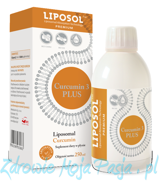 Liposol™ Curcumin 3 PLUS to suplement diety w płynie, zawierający ekstrakt z kurkumy (Curcuma longa) standaryzowany na 95% kurkuminoidów – substancji aktywnych o wysokiej skuteczności biologicznej. Produkt opracowano w technologii Liposol™ Premium Absorption Technology, która umożliwia wyjątkowo wysokie wchłanianie i biodostępność składników aktywnych.