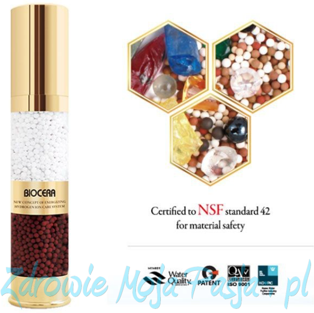 - Skład Kulki ceramiczne Biocera, certyfikowane przez (NSF), kulki turmalinu.