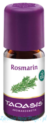 Olejek rozmarynowy - zapach ostry, świeży. To jeden z najcenniejszych olejków w aromaterapii. Jest znakomitym środkiem pobudzającym, afrodyzjakiem a także antyseptykiem i środkiem przeciwbólowym. Stosowany przy zmęczeniu, dolegliwościach starości, oziębłości seksualnej, zaburzeniach pamięci, apatii, zaburzeniach funkcji systemu nerwowego ( epilepsja, paraliż ), dolegliwosciach serca, zmiennym ciśnieniu krwi, cellulicie i żylakach. Olejek rozmarynowy polecany przy bólach głowy różnego pochodzenia, migrenach, bólach reumatycznych, infekcjach dróg oddechowych, kaszlu, bronchicie, grypie, a szczególnie przy schorzeniach skóry, takich jak: łupież, łysienie, rany. Działa także immunologicznie.
